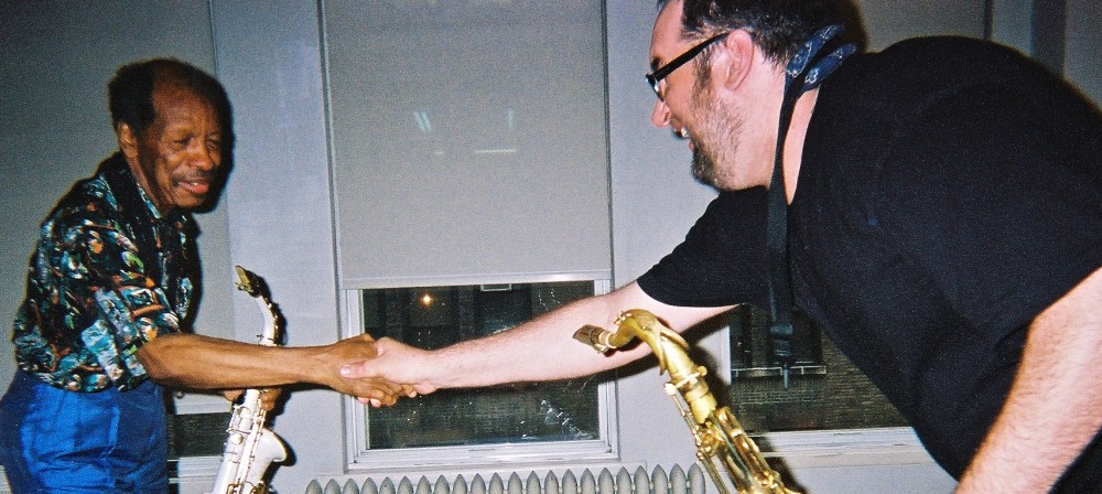 The picture above is my favorite picture of myself and my saxophone teacher, in his apartment in New York in the summer of 2009. It captures a very happy conclusion to my final saxophone lesson with him; post-duet bliss captured immediately after a lengthy improvisation. It is also the final time I saw him.